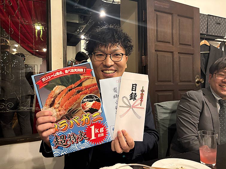 優勝賞品はタラバガニ1キロと九州の風の寄稿をいただきました。